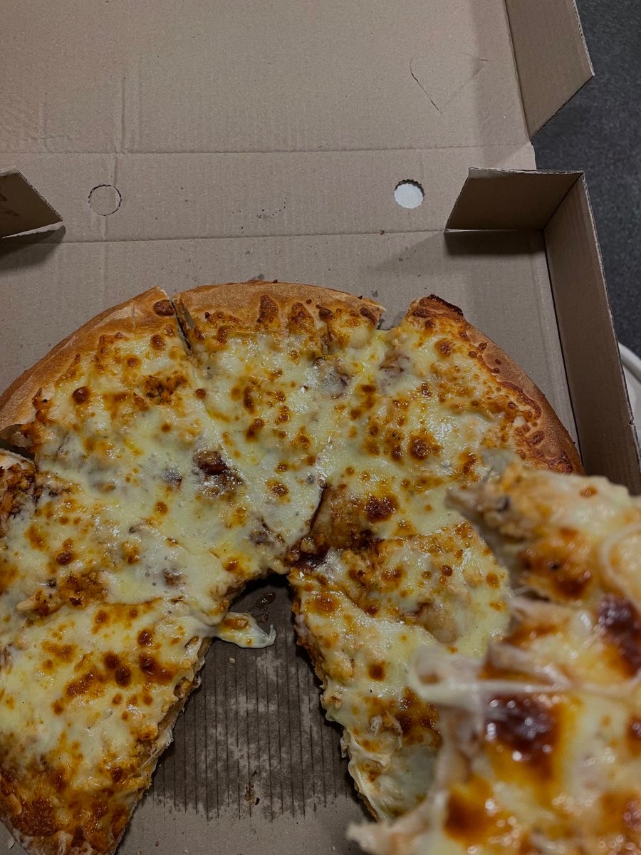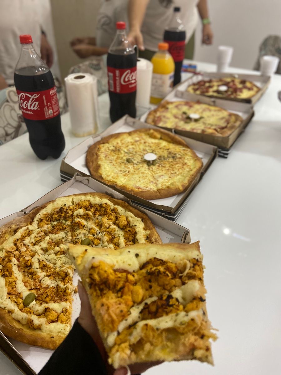 Pizza saborosa, Massa sequinha e crocante e bom tamanho.