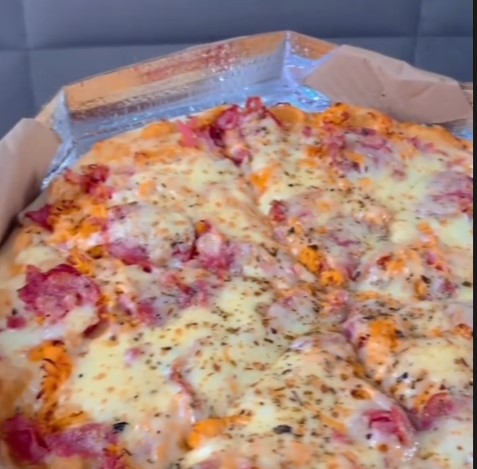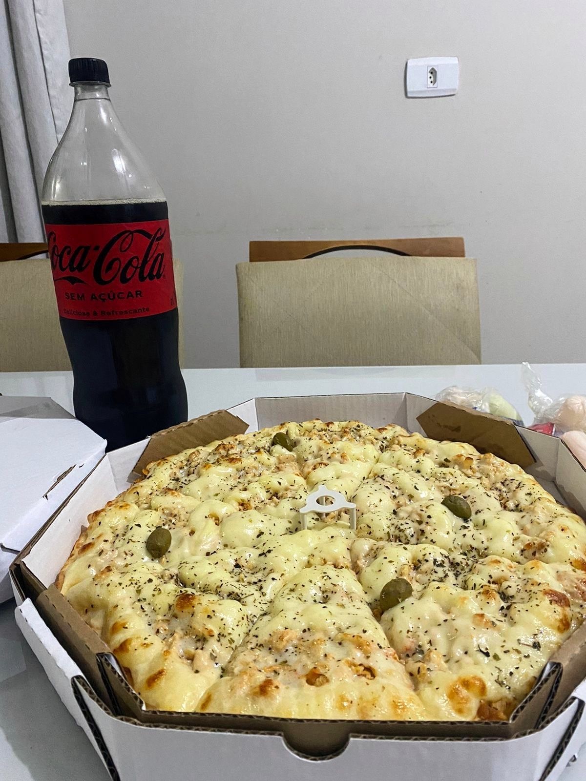 Pizza fresquinha, saborosa, chegou rapidamente e estava quentinha!